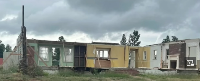 TIME CHANGES EVERYTHING..here is the PARTRIDGE FAMILY house during the demolishing of a lane of famous "fake houses" on the Warner Bro's Studio Lot. Dennis The Menace , Donna Reed and Bewitched, Home Improvement and even VACATION's Christmas Vacation sets are doomed...