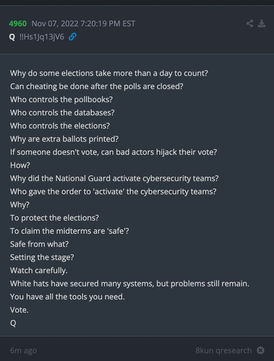 As we watch the world burn and you turn to look at a Q post reader you may notice something interesting.