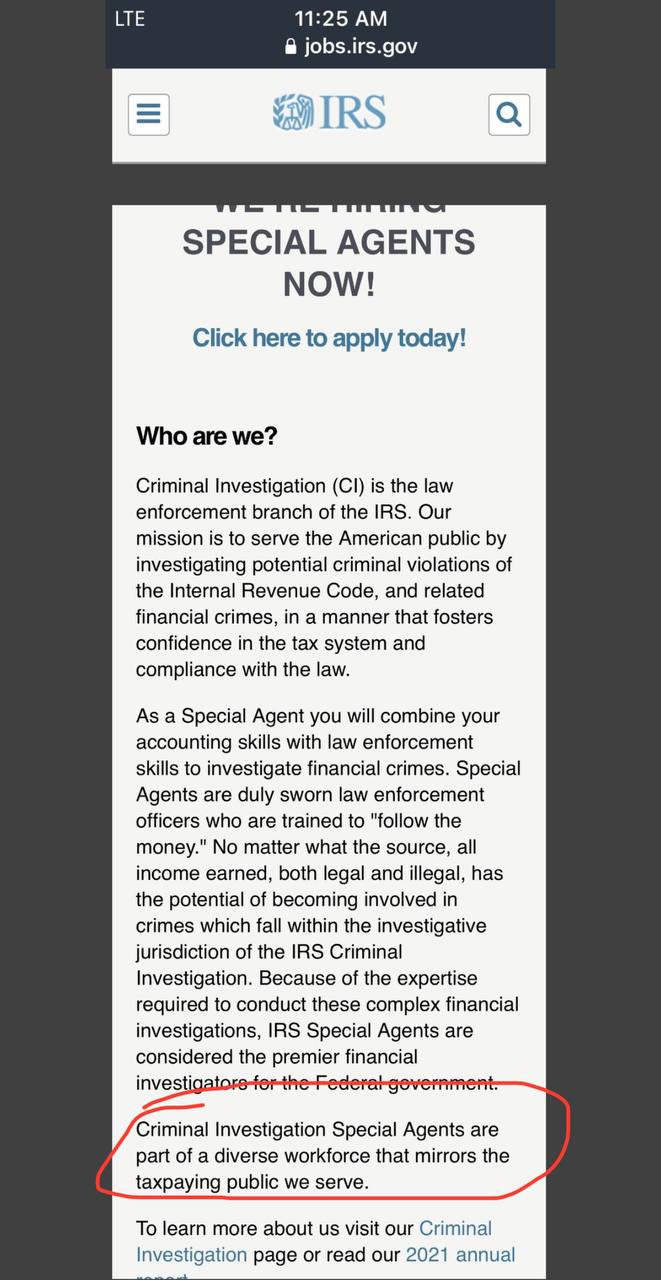 “Criminal Investigation Special Agents are part of a diverse workforce that mirrors the taxpaying public we serve.”